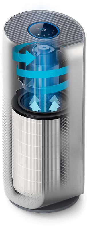 Видаляє до 99,97% забруднень із найдрібнішого вірусу (0,020 мкм), до 0,003 мкм*, включаючи смог, алергени, бактерії, пил і шкідливі гази