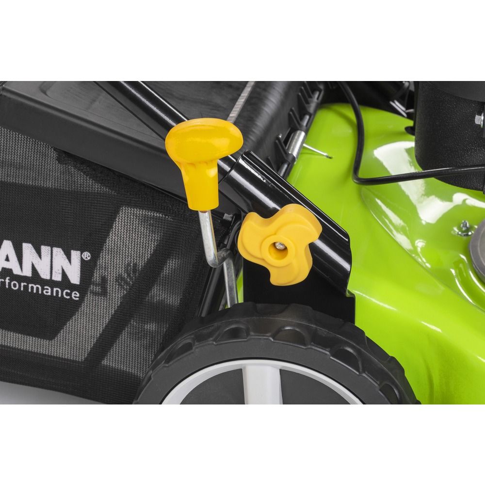 Складна ручка для зручного зберігання. Двигун: OHV, 79,8 куб.см, 1,3 кВт Корпус косарки: сталь