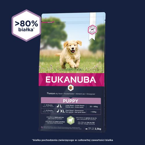 Корм собачий Eukanuba sucha karma w formie granulek dla rosnących szczeniąt dużych ras bogata w jagnięcinę i ryż 6x2,5kgКорм собачий Eukanuba sucha karma w formie granulek dla rosnących szczeniąt dużych ras bogata w jagnięcinę i ryż 6x2,5kg