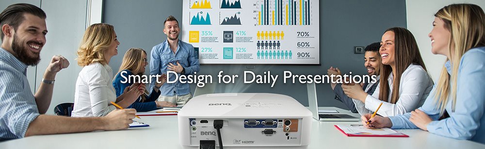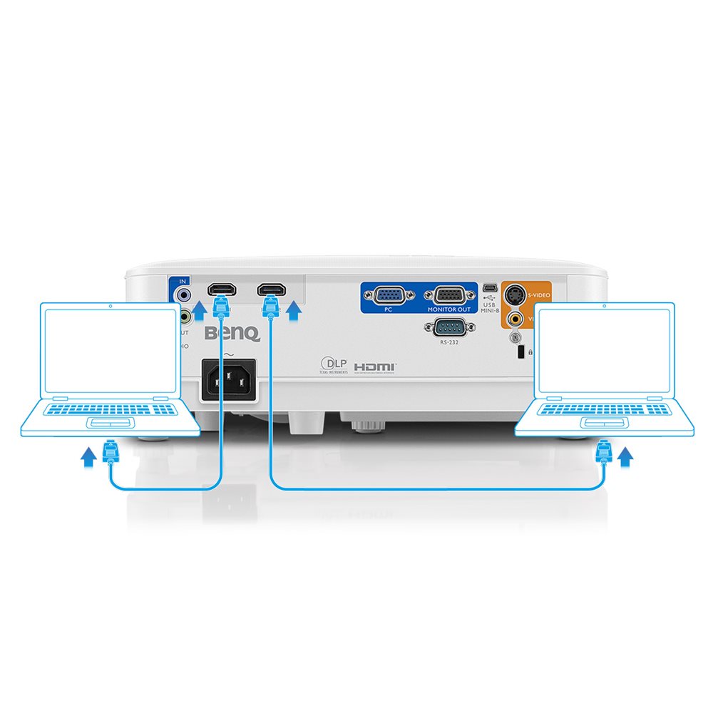Проектор має два входи HDMI і два VGA. Вони розроблені таким чином, що ви можете інтуїтивно підключити кількох доповідачів та їхні ноутбуки або мобільні пристрої одночасно. Така кількість входів дозволяє доповідачам вільно підключатися та від’єднуватися, не потребуючи адаптерів чи інших ускладнень.
