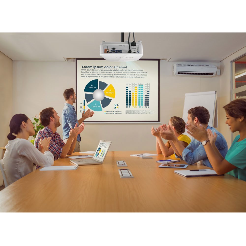 Висока яскравість проектора в 3600 люмен означає, що ви можете проводити презентації навіть у кімнаті з інтенсивним освітленням, і будьте впевнені, що навіть ті, хто сидить у глибині кімнати, зможуть чітко бачити зображення. Більше того, проектор покращує якість зображення завдяки своїм яскравим кольорам як для відео, так і для зображень, а також одночасно покращує чіткість і дрібніші деталі у вашому текстовому вмісті.