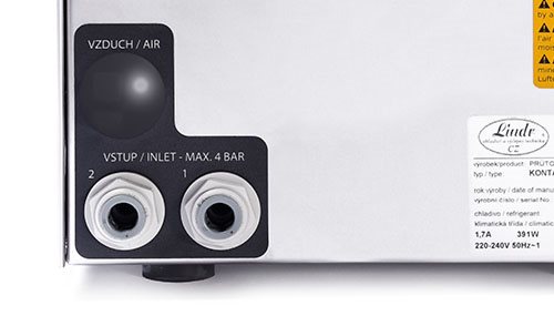 Усі контактні охолоджувачі постійно вдосконалюються та відповідають усім останнім чеським і європейським стандартам безпеки та сертифікатам. Обладнання для кранів LINDR PYGMY 40Green Line new захопить вас збільшеною безперервною продуктивністю 40-50 л/год, що дозволить вам насолоджуватися приблизно 80-100 ідеально охолодженими напоями протягом однієї години. У процесі виробництва наголос також робився на навколишнє середовище, тому PYGMY40 оснащено екологічно чистим холодоагентом R-290. Крім того, він відрізняється підвищеною енергоефективністю та економією електроенергії до 20%. Цей пристрій не має вбудованого повітряного компресора. Для нагнітання напою з бочки необхідно використовувати зовнішнє джерело тиску, наприклад: редукційний клапан і аксесуари для відповідного харчового газу (наприклад, CO2, Biogon) або зовнішній повітряний компресор.