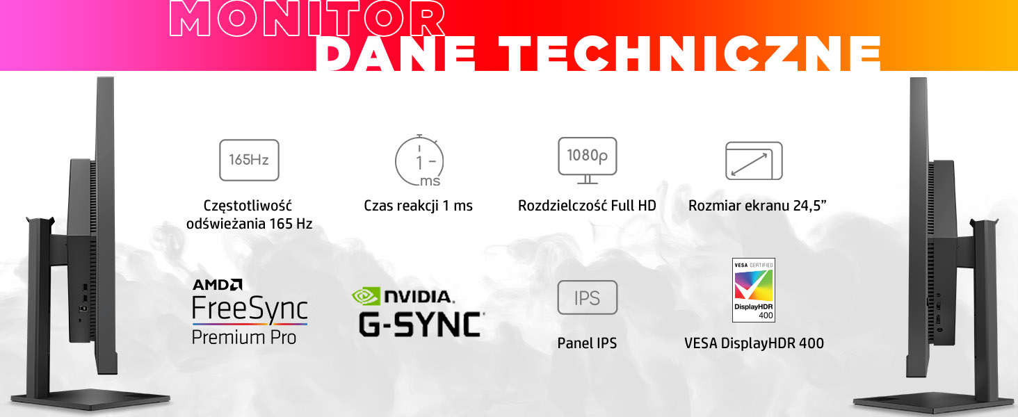 З частотою оновлення 165 Гц[1] і часом відгуку 1 мс із функцією Overdrive[1], ви уникнете спотворень і розривів зображення і зможете насолоджуватися повноцінним динамічним ігровим процесом. Цей монітор було перевірено NVIDIA на сумісність із технологією NVIDIA® G-SYNC®[3].