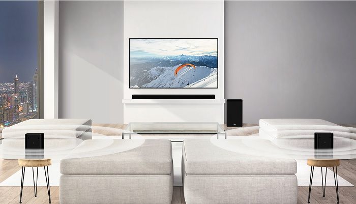 З 5.1.2-канальним звуком, потужністю 520 Вт і сабвуфер, LG Soundbar SP9YA розроблений, щоб покращити ваші враження слухові апарати були винятковими. Ефект тривимірного 3D звуку досягається завдяки додаткові динаміки спрямовані вгору та вбік. Завдяки їм все кімната наповнюється високоякісним об'ємним звуком.