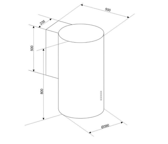 Ширина: Ø 38 см Управління: Електронні сенсорні клавіші Режим роботи: Вихлоп або абсорбер Діапазон швидкості: 4 кроки Продуктивність: макс. 767 м3/год. Споживана потужність: макс. 234 Вт Рівень шуму: макс. 60 дБА Освітлення: світлодіодне 2 x 2 Вт Фільтр: алюмінієвий Колір: чорний Діаметр виходу: Ø 150 мм
