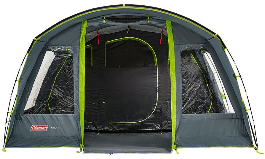 Vail® 6 Coleman — новий, просторий тунельний намет для всієї родини! Тепер ви можете отримати зручний доступ до вестибюля як спереду, так і збоку. Для бренду Coleman безпека під час сімейного відпочинку є важливою. З цієї причини ми оснастили модель Vail® 6 додатковими функціями. Зовнішнє полотно намету не горить і самозагасає при контакті з вогнем. Крім того, щоб подбати про малечу, ми розмістили тканинні стопори біля блискавок у спальнях. Завдяки цьому в екстреній ситуації вони завжди в межах досяжності і можуть бути легко відкриті навіть дітьми. Сильний дощ не зрівняється з поліестеровим листом із водонепроникністю до 4000 мм. Повністю проклеєні та закріплені шви в поєднанні з міцною вбудованою поліетиленовою підлогою забезпечують надійний захист від дощу та комах. Для захисту від інтенсивного сонця ми покрили додатковий фільтр UVGuard™, який забезпечує захист SPF 50. Додаткові функції включають: відкидний поріг, який полегшує вхід і вихід з намету! відпочинок, три збільшені спальні XXL для комфорту та більшого комфорту під час сну, подовжений передній козирок, який захищає від сонця та дощу.
