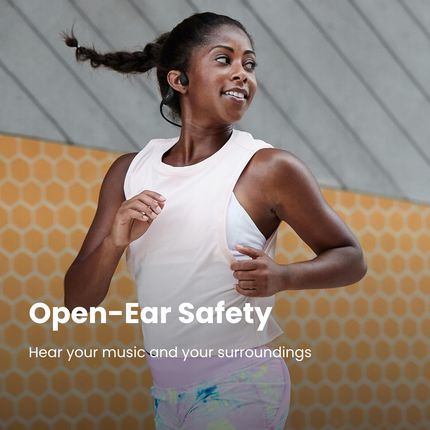 Легкість і впевненість Зустрічайте свого нового партнера по навчанню. Навушники OpenRun були розроблені для спортсменів, які цінують впевненість у тому, що навушники залишаться на місці навіть під час інтенсивних тренувань. Все це для того, щоб залишатися мотивованим і знати про ваше оточення. 8 годин використання та швидка зарядка Завдяки батареї, яка забезпечує 8 годин безперервної роботи, і легким голосовим командам, таким як «грати», «пропустити», «пауза», ви можете насолоджуватися музикою, розмовами та аудіокнигами цілий день.