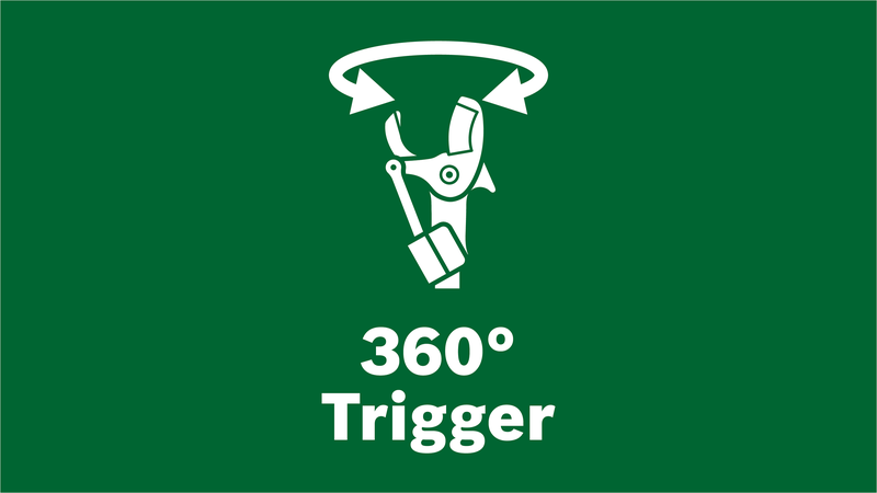 Запатентований перемикач на 360° забезпечує оптимальне розташування руки та найзручніше положення для різання навіть у важкодоступних місцях і незалежно від кута різання.