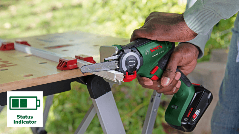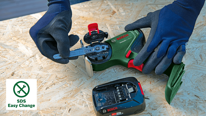 Система SDS — це система монтажу аксесуарів, яка забезпечує швидку, просту та без інструментів заміну пилкових полотен і забезпечує автоматичне блокування пилкового полотна, коли кришка закрита.