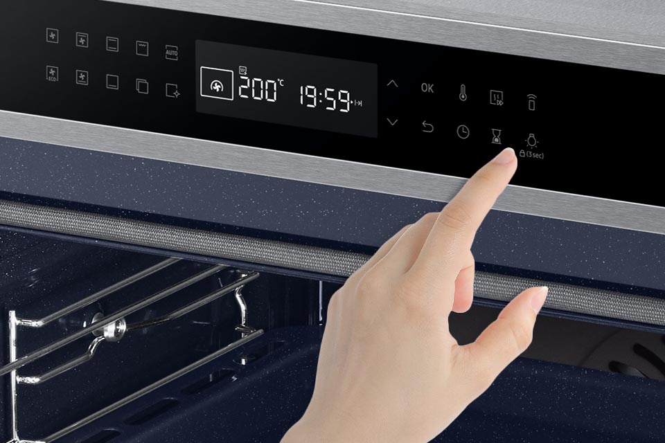 Замок захищає від ненавмисного запуску духовки та внесення небажаних змін у вже активовану програму випічки. Таким чином, він запобігає багатьом неприємним випадкам. Це особливо корисно, коли на кухні з вами є діти.