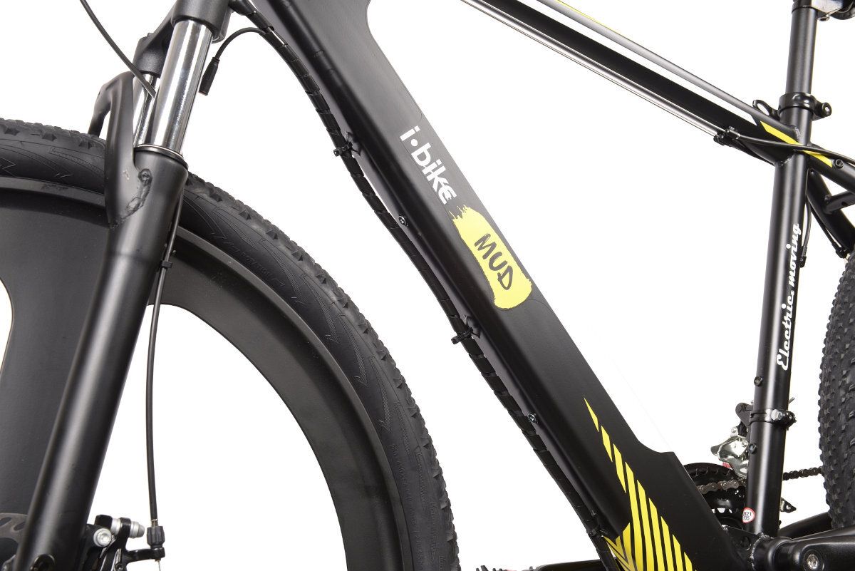 Електричний МТБ-велосипед I-BIKE MUD оснащений безщітковим двигуном, розташованим на задньому колесі, який забезпечує роботу з потужністю 250 Вт, а його максимальний запас ходу становить 60 км. Ця конструкція підтримується акумулятором 36 В ємністю 13 Ач. Ця батарея має неймовірний термін служби до 500 заряджань.