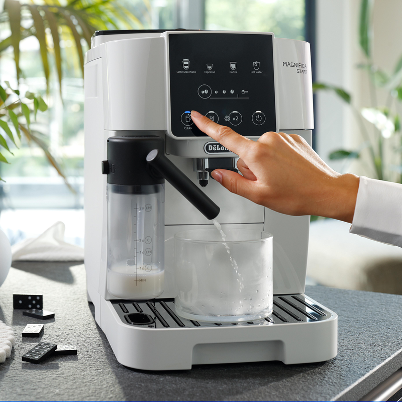 Для ще більшого комфорту користувача кавомашини De'Longhi оснащені автоматичним процесом очищення та видалення накипу. Кабелі очищаються від залишків кави під час автоматичної промивки відразу після включення. Водночас внутрішній контур нагрівається, щоб кава була правильної температури. Перед тим, як вимкнути кавоварку, труби ще раз промиваються для видалення кавового пилу. Машина також інформує про необхідність видалення накипу та проводить користувача через окремі етапи процесу. Крім того, деталі кавомашини De'Longhi можна мити в посудомийній машині.