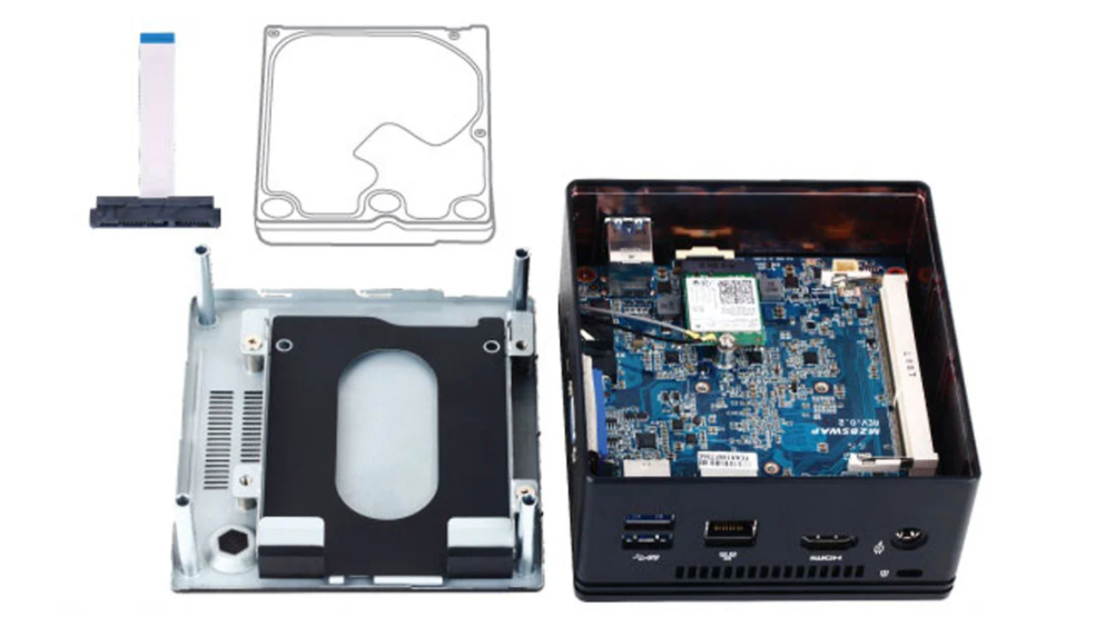 Nettop Gigabyte J3160 має відсік, у який можна встановити 2,5-дюймовий жорсткий диск SATA. Завдяки цьому ви можете встановити жорсткий диск обраної вами ємності.
