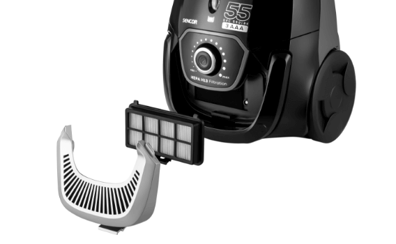 У пилососі Sencor SVC 5501BK-EUE3 використовується фільтр HEPA, який ефективно затримує 99,97% пилу та алергенів, що особливо важливо для людей з алергією. Цей фільтр можна легко демонтувати та замінити за потреби.