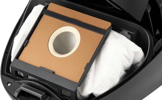 Пилосос оснащений міцним мішком для пилу з безпечного синтетичного матеріалу. Мішок служить довше і забезпечує кращу фільтрацію, ніж його паперовий варіант. Для зручності користування світлодіод на пилососі повідомить вас, коли мішок заповниться.