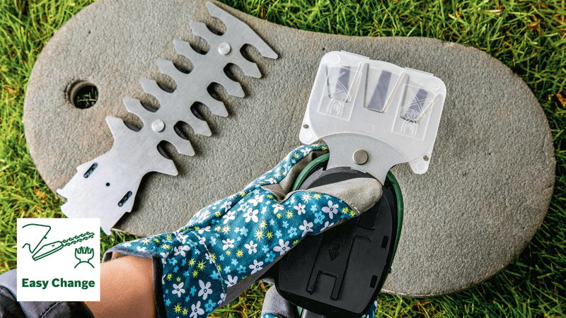 Легко замінюйте леза - просто переверніть інструмент і посуньте нижню кришку, щоб зняти лезо. Потім вставте лезо для кущів і знову встановіть кришку - EasyShear готова до використання. Заміна аксесуарів не вимагає використання додаткових інструментів.