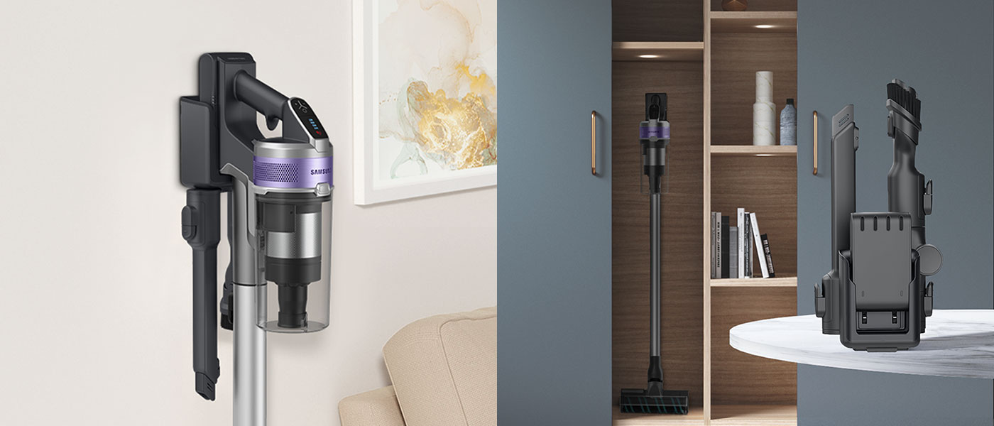 Відкрийте для себе революційну станцію для прибирання, присвячену бездротовому пилососу Samsung Jet™, яка зробить прибирання ще простішим. Відтепер спорожнення контейнера для бруду стане зручнішим і ефективнішим. Ви не будете вдихати пил і більше ніколи не забруднитесь. Просто від'єднайте його від пилососа та поставте на очисну станцію. Пил і бруд автоматично видаляються у великий мішок для бруду.