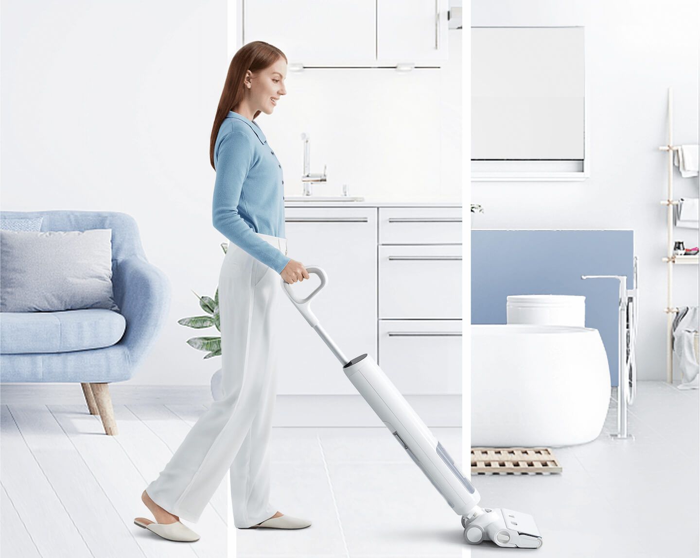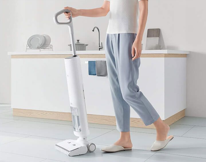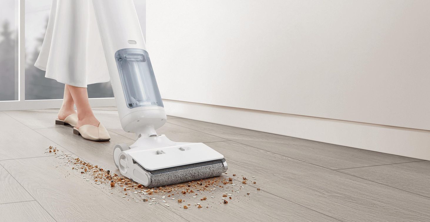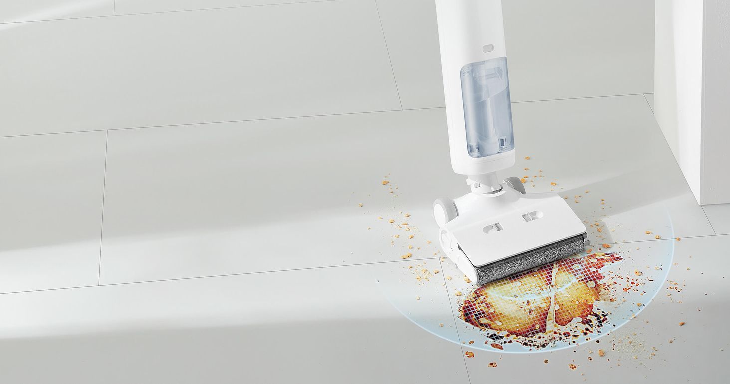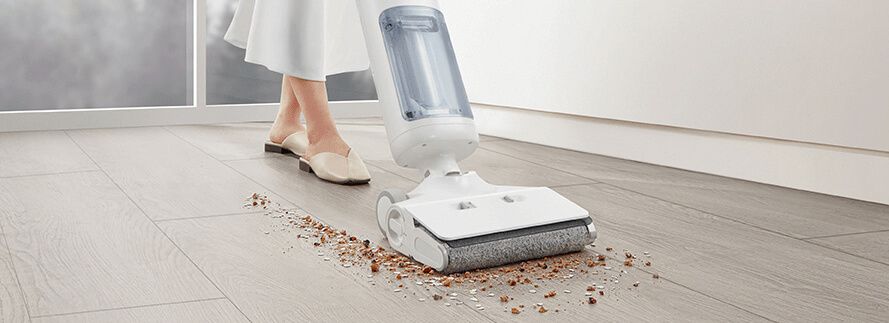 Великий, простий у використанні валик для чищення рухається вперед, щоб пилососити, мити та мити підлогу одночасно, залишаючи вашу підлогу чистою та сяючою лише після одного чищення.