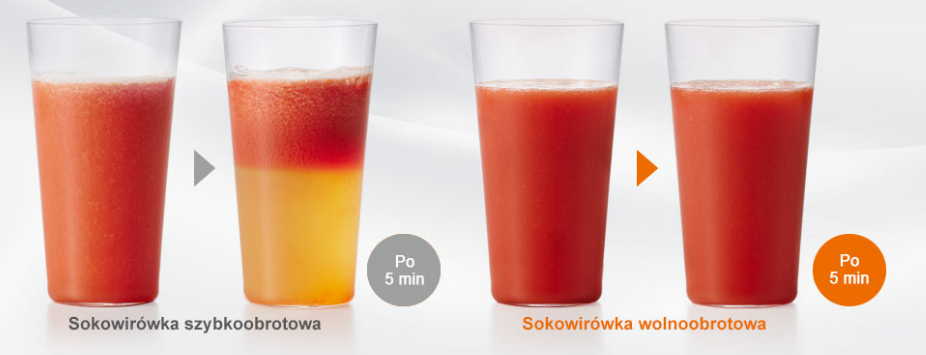 Соковижималка запобігає знищенню поживної цінності через тепло, яке утворюється тертям. Через деякий час сік не виділяється, а смак і аромат зберігаються довше.