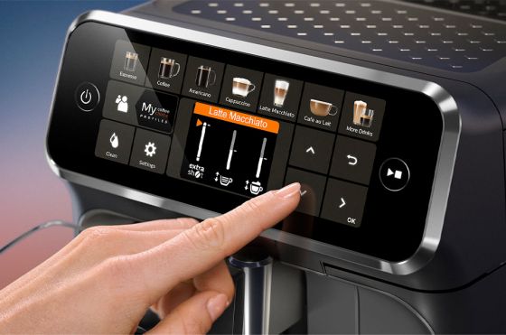 Завдяки кольоровому дисплею та сенсорній панелі керування приготування кави стане простим та інтуїтивно зрозумілим. Ви можете легко налаштувати 5 рівнів потужності, кількість кави та молока, а також 3 налаштування температури. Кава завжди буде ідеально відповідати вашим уподобанням.