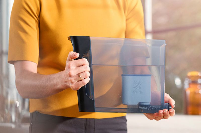 Чиста вода та еспресо-машина без накипу – це результат запатентованого фільтра AquaClean. Ви можете приготувати до 5000* чашок кави без видалення накипу.* За 8 змін фільтра, як вказує пристрій. Фактична кількість чашок залежить від типу кави, вибраного промивання та очищення.