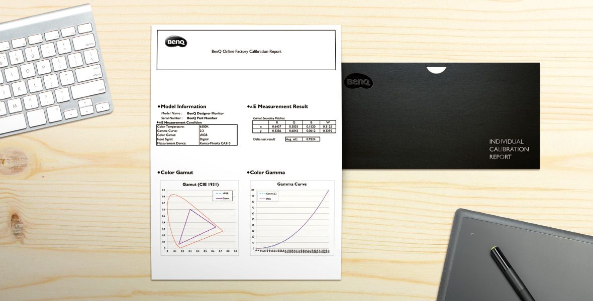 Кожен дизайнерський монітор BenQ проходить заводське калібрування під час виробництва, щоб забезпечити точні значення Delta-E та Gamma. Результати калібрування перевіряються на відповідність галузевим стандартам кольорів, щоб забезпечити найправдивіше та репрезентативне зображення оригінального вмісту.