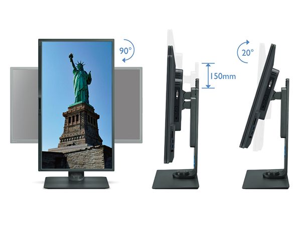 Широкий діапазон регулювання висоти, нахилу, кута й повороту забезпечує ідеальне налаштування робочої станції. При використанні в портретному режимі інтелектуальний датчик орієнтації екрана PD3200Q автоматично повертає вихідний вміст для відображення зображень у повному контексті.