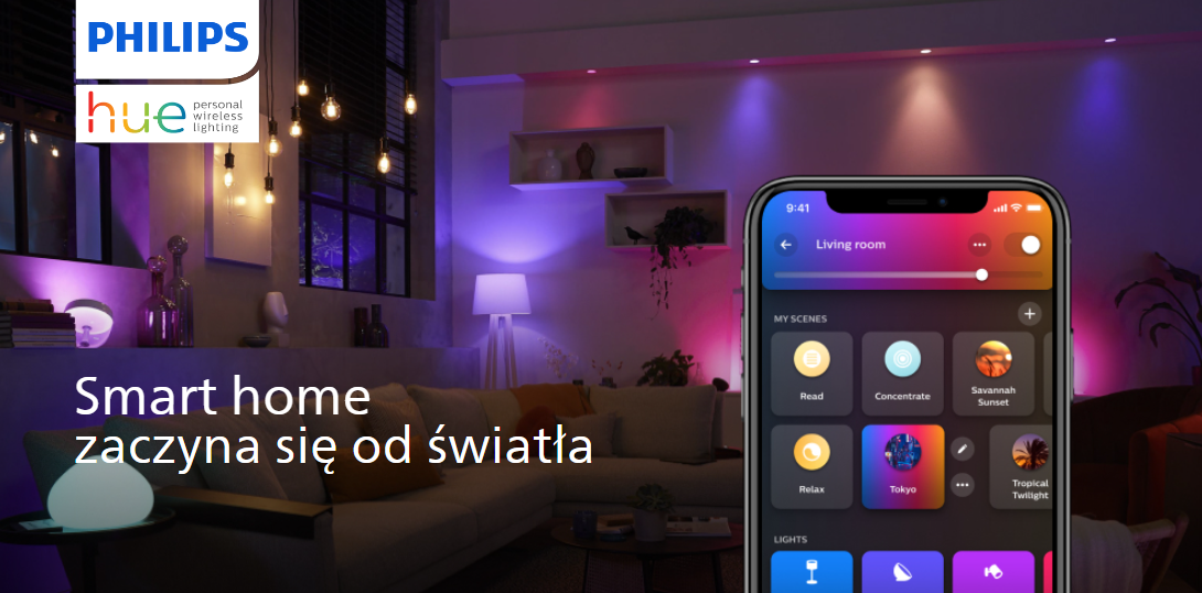 Змініть свій дім за допомогою палітри з 16 мільйонів світлих кольорів – легко й швидко створіть атмосферу, яка підходить для будь-якого випадку. Одним дотиком ви можете створити святкову атмосферу, ідеальну для домашньої вечірки, перетворити свою вітальню на кінотеатр, змінити вигляд свого дому за допомогою різних кольорів світла та багато іншого.