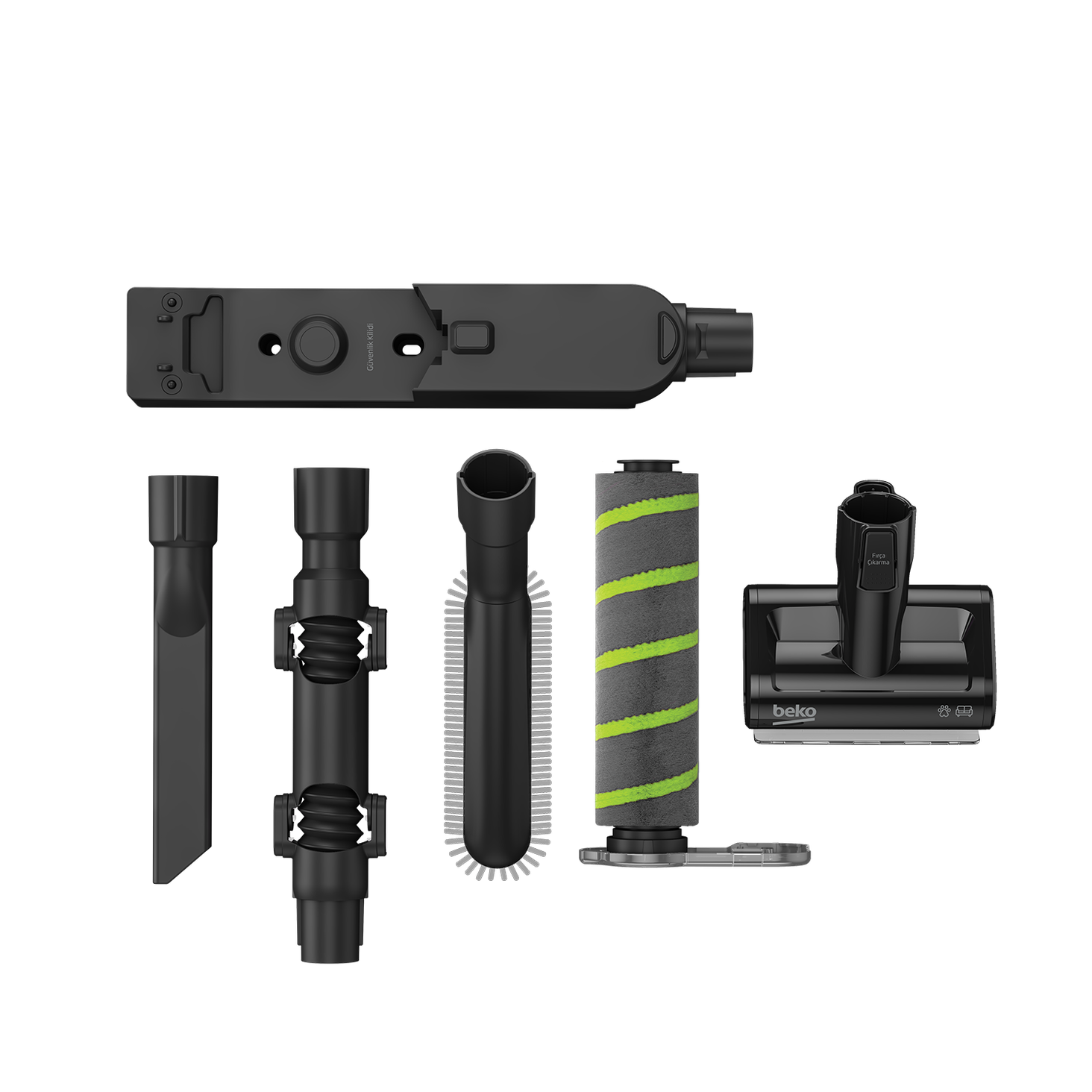 У набір входить: світлодіодна електрощітка, щітка для м'якої оббивки, щілинний інструмент, змінний валик для твердої підлоги, міні-турбо (електро) щітка - для шерсті тварин, спеціальна щітка для збору пилу з меблів, гнучкий конектор для твердої підлоги. доступні місця, док-станція для зарядки та зберігання.
