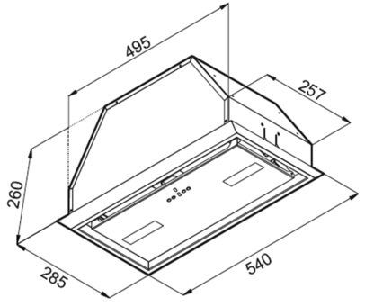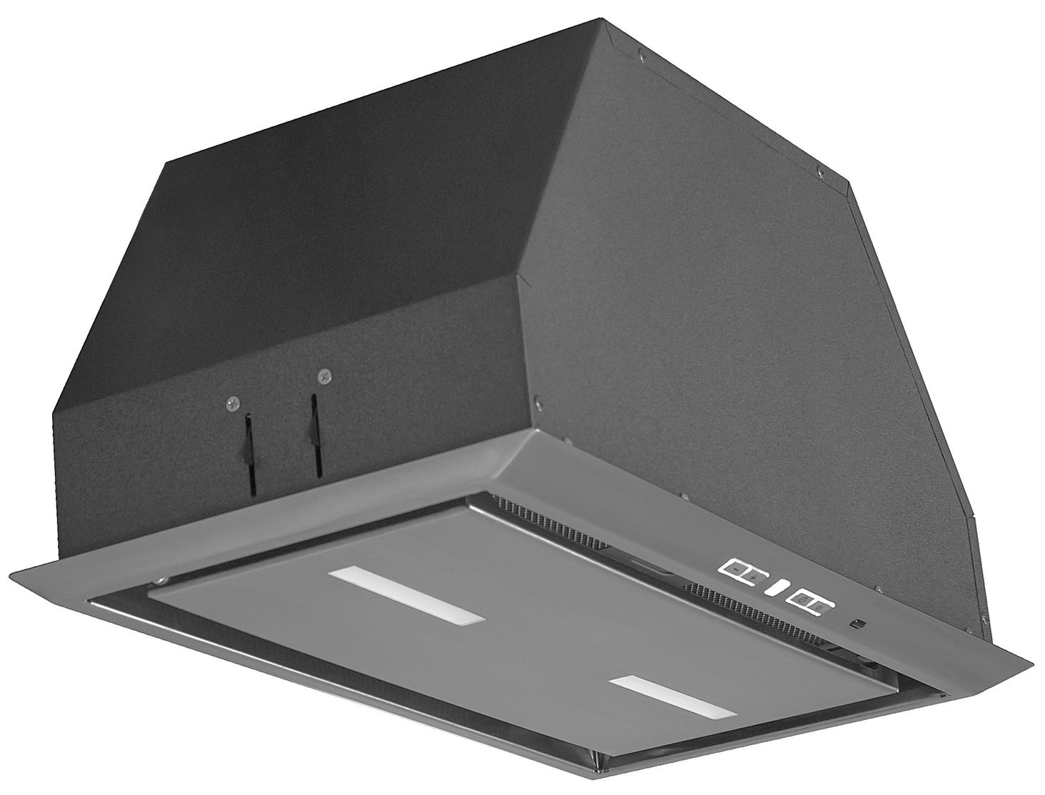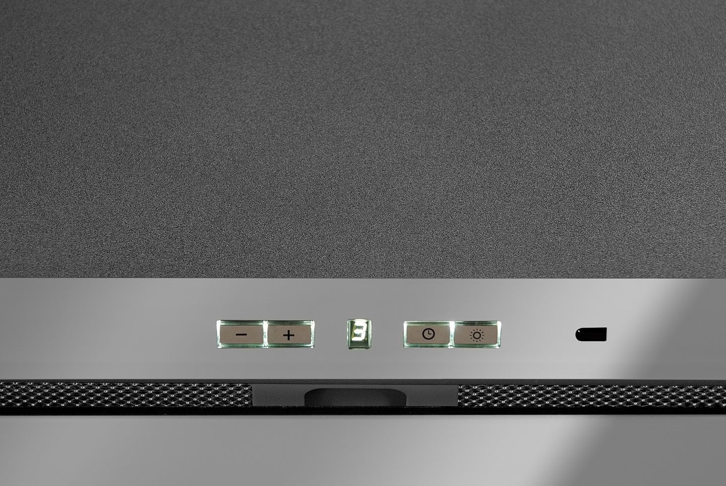 Витяжка керується поетапно за допомогою кнопок. Досить лише одного дотику пальцем, щоб встановити один із трьох рівнів потужності турбіни або ввімкнути освітлення.