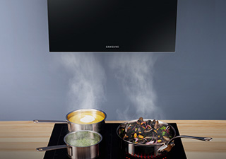 Вбудовані продукти Samsung поєднують найкращі технологічні рішення з найсучаснішим дизайном. Подивіться, як витяжки Samsung виконують своє призначення на кухні завтра.