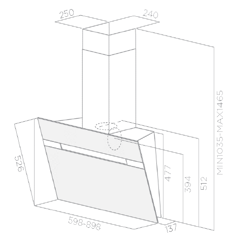 Мінімальна/максимальна висота: 1035 мм - 1465 мм Ширина: 600 мм Глибина: 137 мм