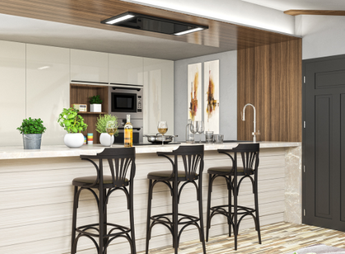 Витяжку Bardot часто вибирають для закритих кухонь, а також для великих кухонь, відкритих у вітальню чи їдальню. Він дуже добре працює в багатьох аранжуваннях - від класичних до сучасних._x000D_ Стельова кухонна витяжка ідеально підходить для кухонь з підвісними стелями. Це особливо сподобається людям, які люблять мати багато свободи та простору під час приготування їжі.