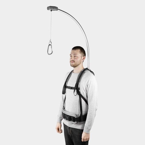 Зручна й універсальна опорна система на рамі для зменшення сили захоплення при роботі з телескопічними втулками, садовими інструментами та втулками високого тиску. Працюйте без втоми, підвищуйте продуктивність: універсальна рама для перенесення складається з м’якого ремня, який зручно носити на спині, з пружинним балансиром і гачком для кріплення приладів та інструментів. Система перенесення переносить вагу телескопічних наконечників, наконечників високого тиску або садових інструментів на весь тулуб оператора, тому необхідна сила захоплення рук зменшується майже до нуля. Підпружинений стабілізатор із сталевим тросом, що втягується, забезпечує гнучке пристосування передачі сили до потрібного положення захоплення.