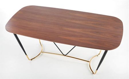 Технічні дані: Кольори горіх/чорний/золото Стільниця МДФ + натуральний шпон Форма стільниці: прямокутник із закругленими краями Функція складання Матеріал рами сталь з порошковим покриттям Ніжка хромована сталь Гарантія Самостійна збірка - легко