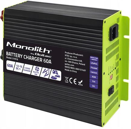Випрямляч акумуляторний Qoltec Uniwersalny Prostownik Sieciowy Lifepo4 Agm Gel 60A (51916)