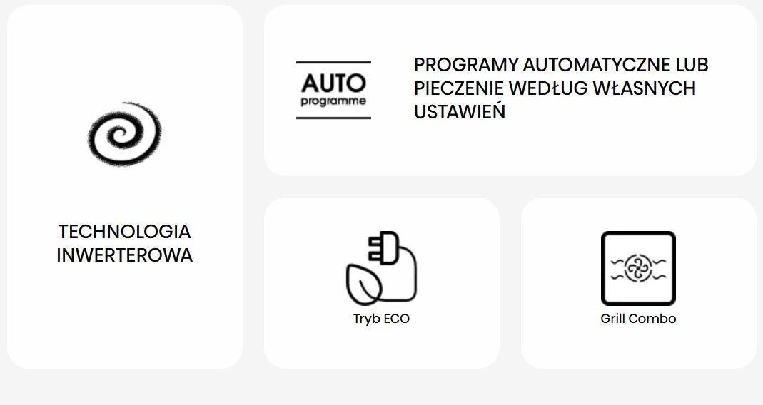 ФункціїGrill, Podgrzewanie, Rozmrażanie, Combigrill