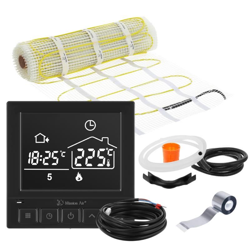 Комплекти з нагрівальними матами МА-160 призначені для монтажу під плитку для забезпечення комфортної теплої підлоги. Дана система опалення може бути додатковим джерелом тепла в будинку або використовуватися як основне, за умови збільшення потужності опалення матів перевищує тепловтрати даного приміщення. Обираючи наш комплект з Mission Air, ви отримуєте всі необхідні елементи ефективної та енергозберігаючої системи опалення вашого будинку. Вам більше не доведеться збирати його з окремих компонентів. Крім того, ви отримуєте сучасні технології, які дозволять отримати приємне тепло під ногами. Це ідеальне рішення для ванних кімнат і кухонь, а також інших приміщень, де передбачається укладка плитки. Гарантія на мат: 25 років.