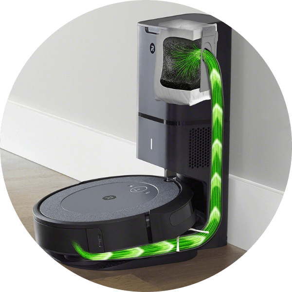 Прибирайте за собою та за собою: вам не доведеться місяцями торкатися пилу та бруду, тому що робот-пилосос Roomba® i3+ автоматично спустошує вміст у станцію Clean Base з автоматичним видаленням бруду.