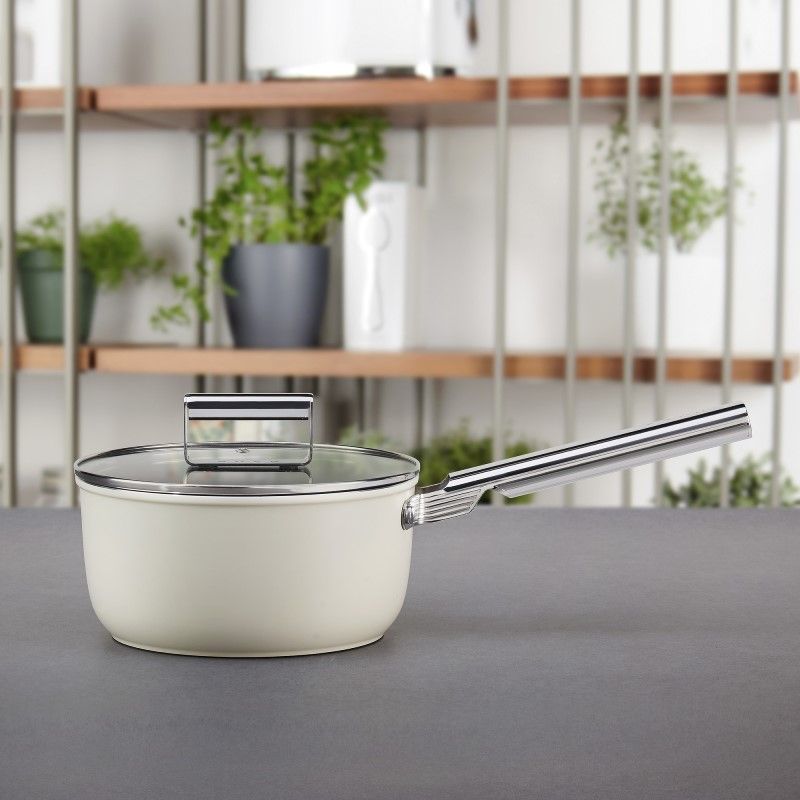 Нова серія посуду Smeg складається з кількох різних типів продуктів: сковорідки, каструлі, воки та каструлі. Завдяки запатентованому дну всі вироби сумісні з будь-яким типом плити. Крім того, використання ручок з нержавіючої сталі в поєднанні з кришками із загартованого скла дозволяє використовувати посуд в духовці при температурі до 250°C і мити в посудомийній машині Компактна і практична каструля Smeg ідеально підходить для швидкого розігріву їжі, розтоплення. масла або варених яєць.на сніданок. Це чудове доповнення до будь-якого кухонного посуду.