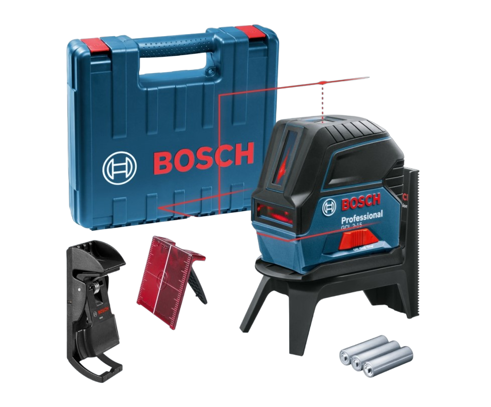 Bosch GCL 2-15 — це багатофункціональний поперечний лазер для професіоналів, призначений для ремонтно-оздоблювальних робіт і для будівельної галузі. Інструменти полегшують зведення перегородок, роботи з вирівнювання, монтаж підвісних стель, укладання плитки та внутрішню обробку. Лазер випромінює 2 лінії (вертикально-горизонтальні) червоного кольору.