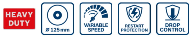 Напруга батареї: 18 В Частота обертів холостого ходу: 3400 – 9800 хв-1 Вага без акумулятора: 2,3 кг Різьба шпинделя болгарки: M14 Діаметр отвору: 22,23 мм