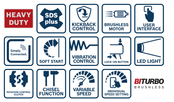 Найвища продуктивність завдяки силі удару 5,8 Дж – найефективніший молоток SDS Plus у своєму класі, призначений для складної роботи з бетоном.