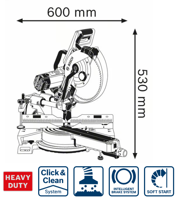 Налаштування кута: 52°L / 60°P_x000D_ Пильний диск Ø: 305 мм_x000D_ Налаштування нахилу: 47°L/47°P_x000D_ Номінальна потужність: 1800 Вт_x000D_ Розмір різання при 0°: 85 x 370 мм_x000D_ Діапазон різання при 0° з прокладкою (макс. вертикально): 120 x 200 м_x000D_ Діапазон різання при 0° з прокладкою (макс. горизонтально): 70 x 400 мм_x000D_ Розмір різання під кутом 45°: 85 x 250 мм_x000D_ Розмір різання під кутом 45° (похило): 60 x 360 мм_x000D_ Розміри інструменту (ширина x довжина x висота): 600 x 860 x 530 мм_x000D_ Частота обертів холостого ходу: 3100 - 4000 хв-1_x000D_ Ø отвору диска: 30 мм_x000D_ Вага: 28,6 кг